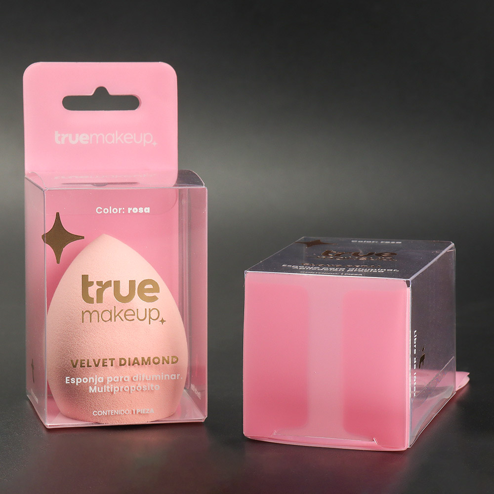 Custom Different SizeThe transparent packaging design not only makes the appearance and color of the beauty blender clearly visible, enhancing product presentation, but also allows consumers to see the entire product before opening the packing plastic boxes, increasing their confidence in purchasing it.The brand logo, combined with eye-catching gold foil stamping, and the pink main color of the packaging box, along with its simple and elegant design style, create a fashionable and feminine look that is very eye-catching. The front of the folding box plastic clearly displays an image of the beauty blender and the brand logo, highlighting the product's elegance and sophistication; the back features detailed product information, making it easy to understand the usage instructions and precautions. The thoughtful hanging hole design at the top makes it convenient for retailers to display the product and saves space.