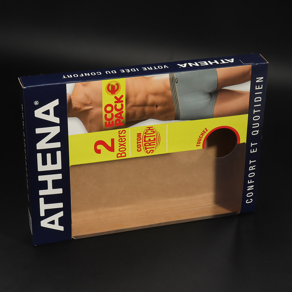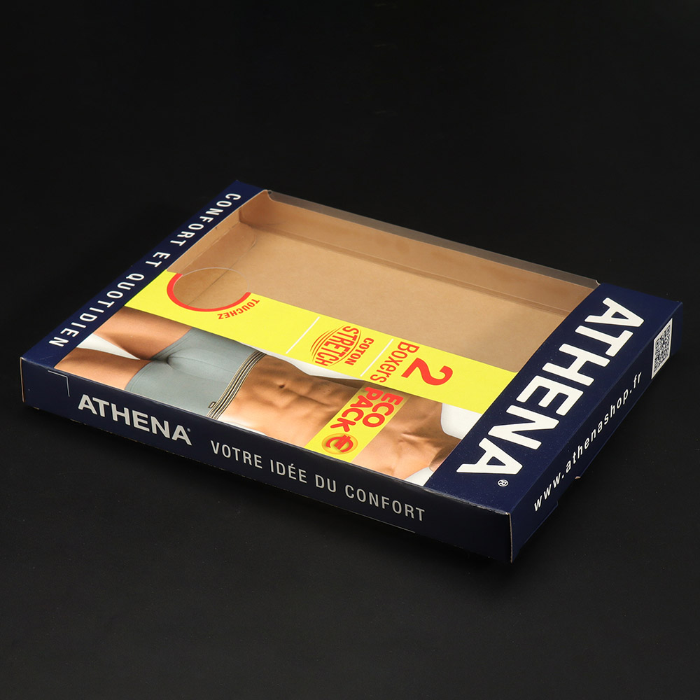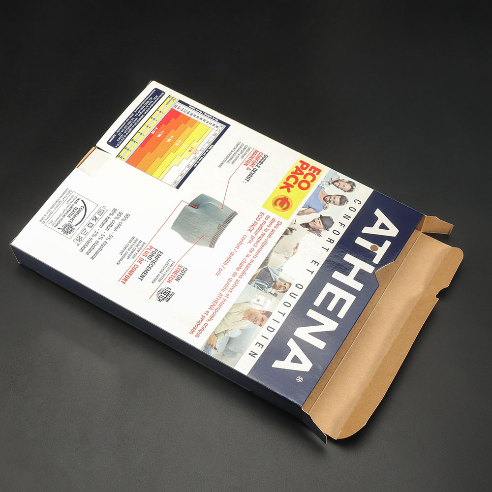 The men's underwear packaging box features a simple and elegant design, clearly showcasing the product's core features. The transparent window on the front of the kraft box packaging allows customers to see the product inside at a glance, increasing its authenticity and credibility.