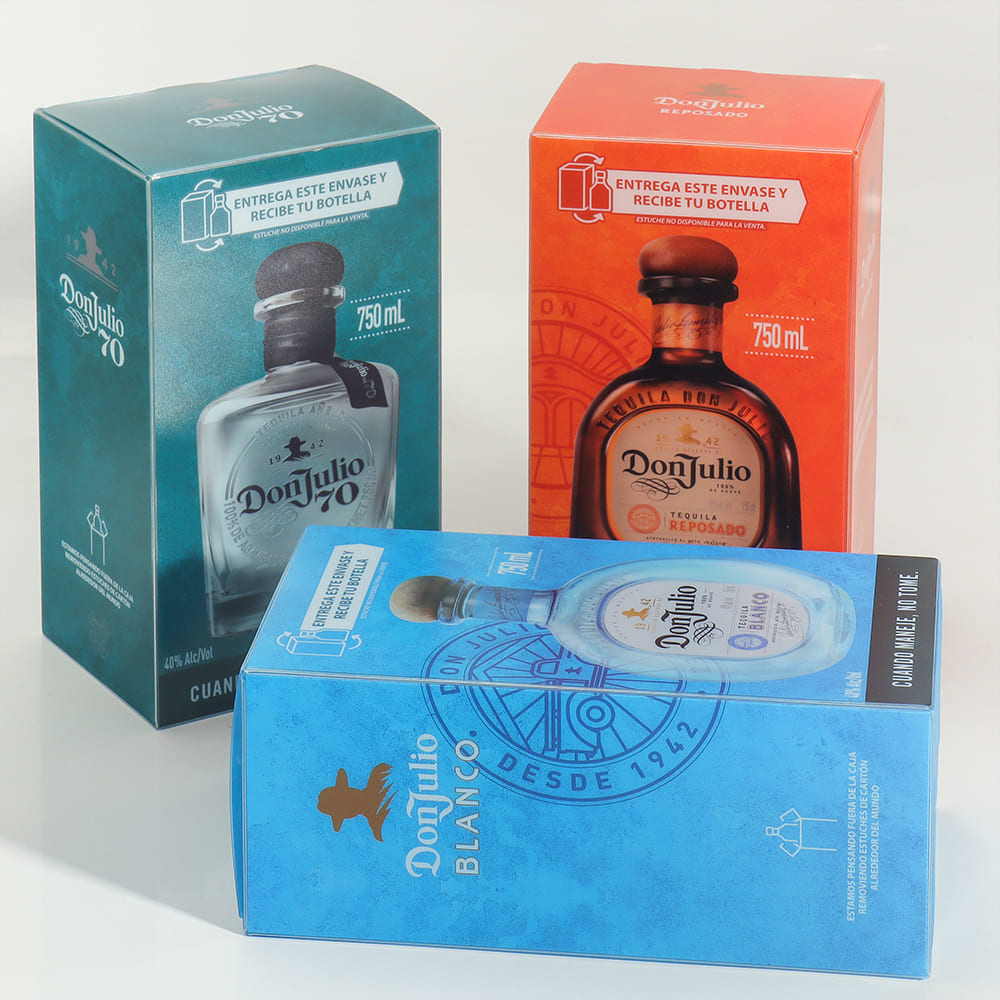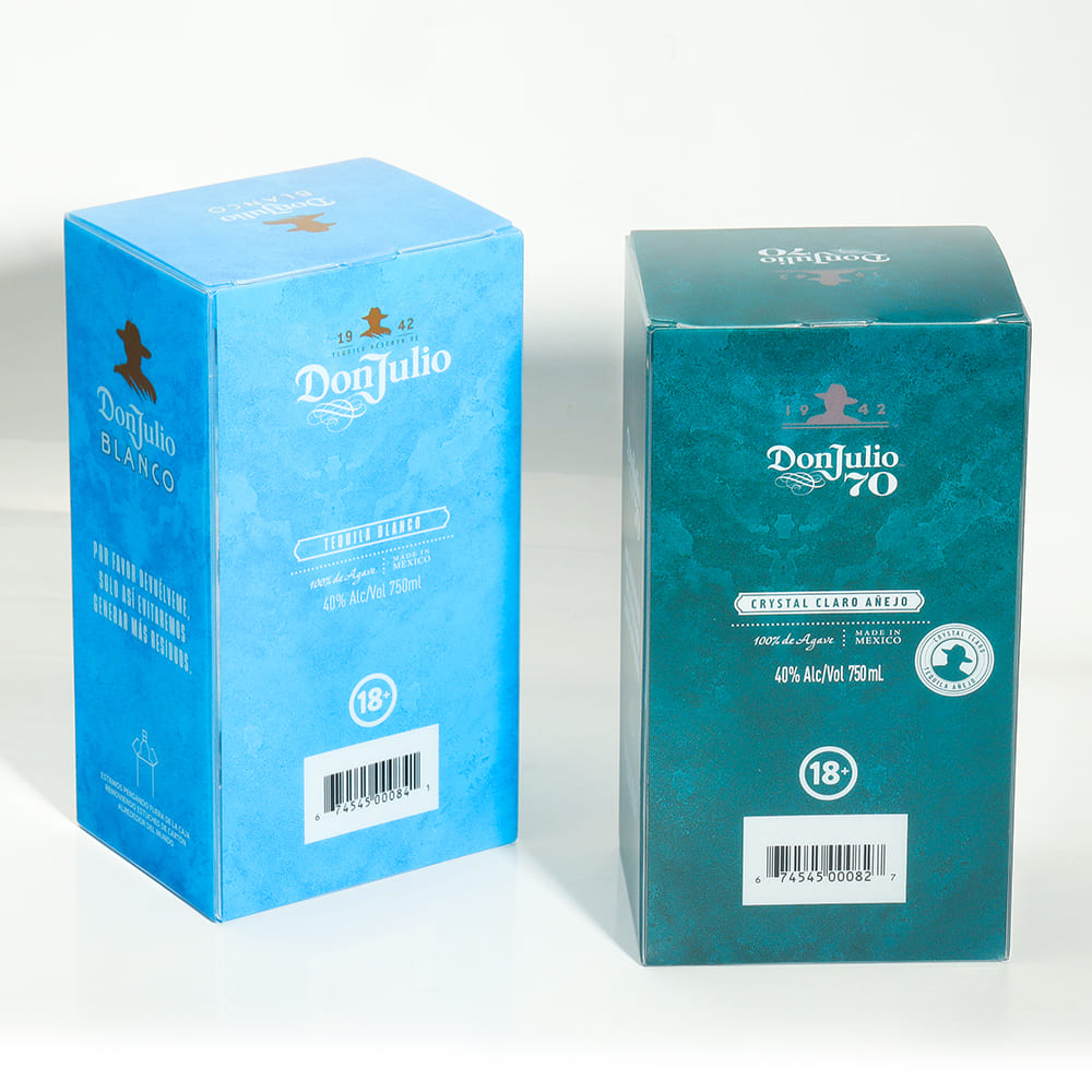 The factory specializes in custom-printed plastic packaging boxes, providing a unique example of customized printing for liquor packaging. Using high-quality plastic materials, it cleverly creates a visually sophisticated, high-end feel. The packaging box features a refreshing blue-green color scheme, making it eye-catching and highly recognizable, and quickly attracting consumers' attention on the shelf.